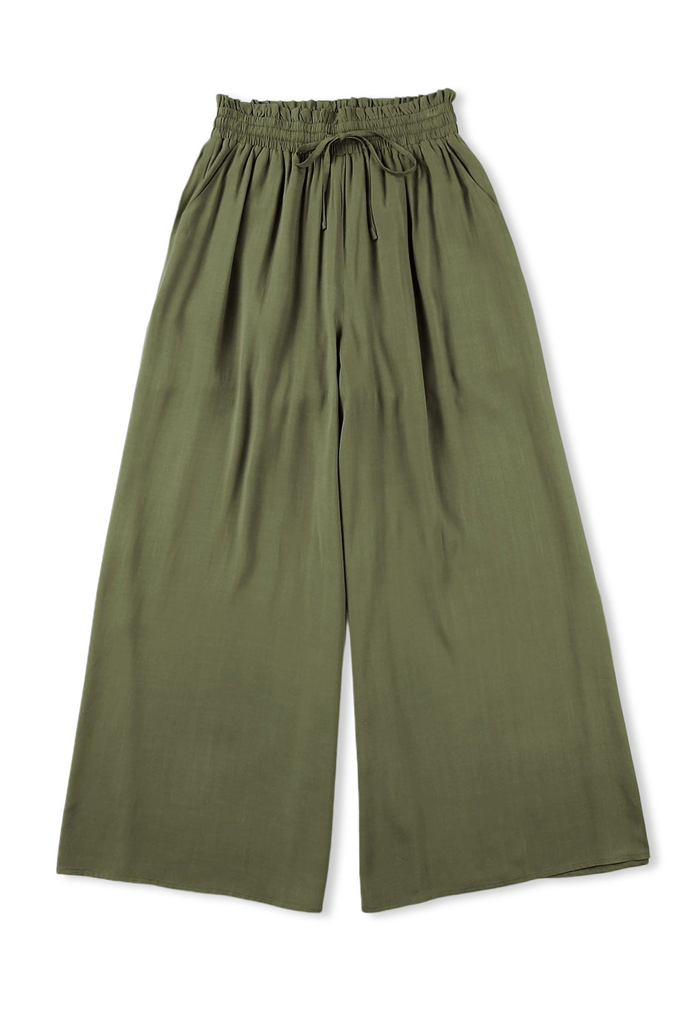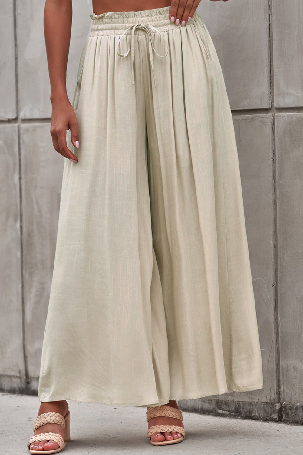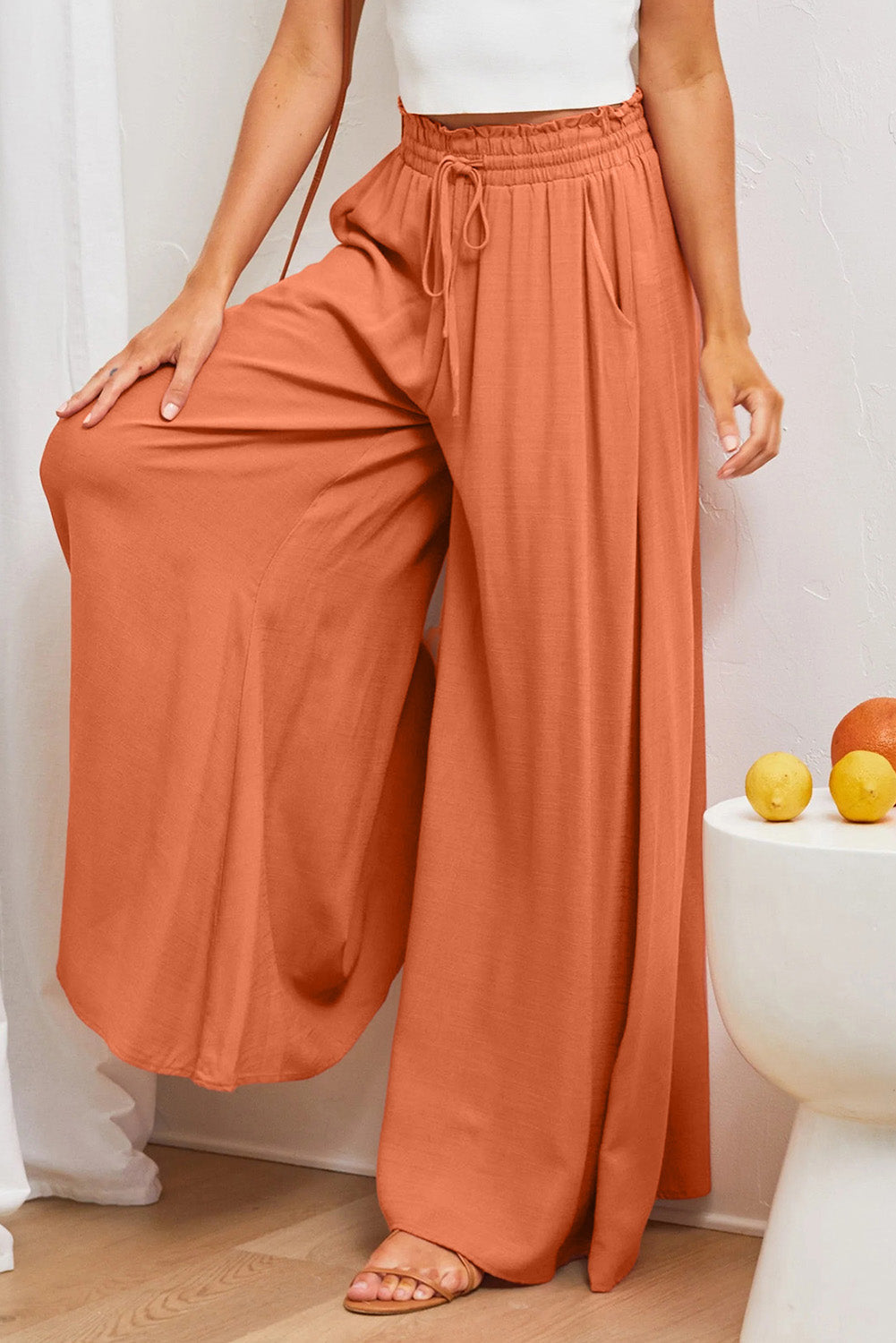 Drawstring Smocked High Waist Wide Leg Pants
