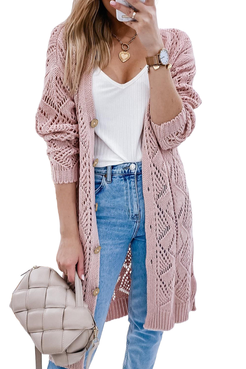 Women's Solid Color Hollow-out Openwork Knit Cardigan