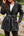 Women's Lapel Collar Pocketed Tie Waist Long Denim Jacket