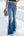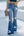 Women Button Up Jeans Heart Print Ripped Flare Fitted Denim Pants