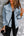 Women's Jean Jacket Long Sleeve Lapel Distressed Raw Hem Buttons Denim Coat