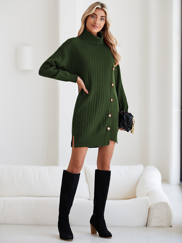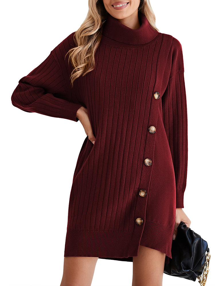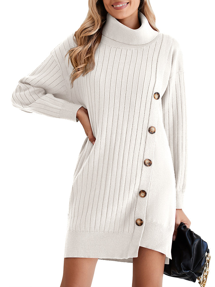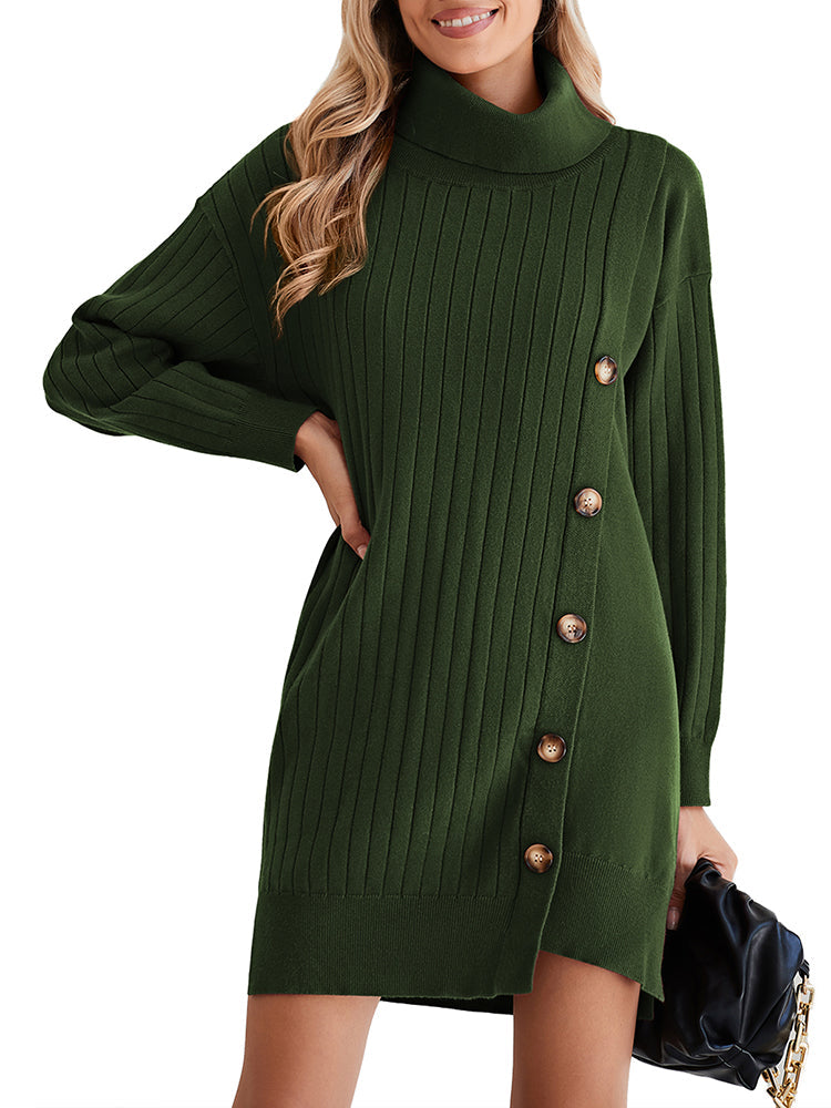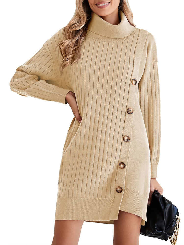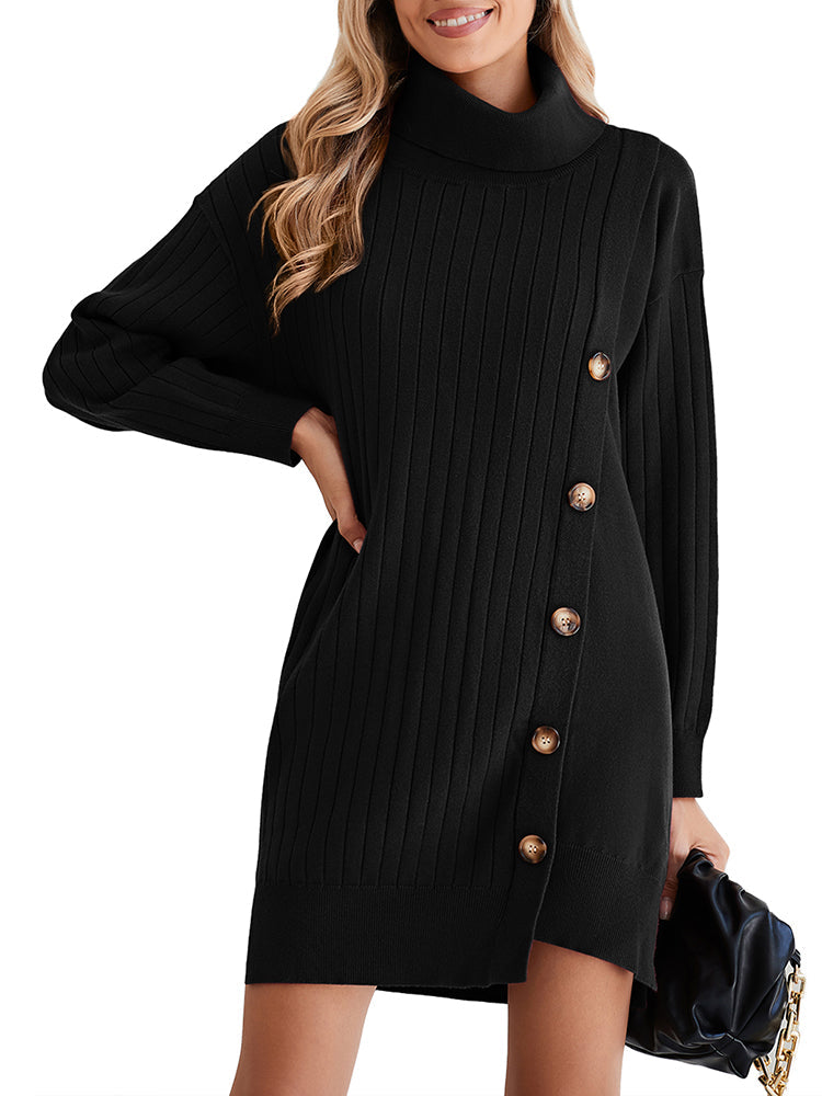 Women's Turtleneck Button Down Sweater Dress Long Sleeve Ribbed Knit Mini Dress Outfits