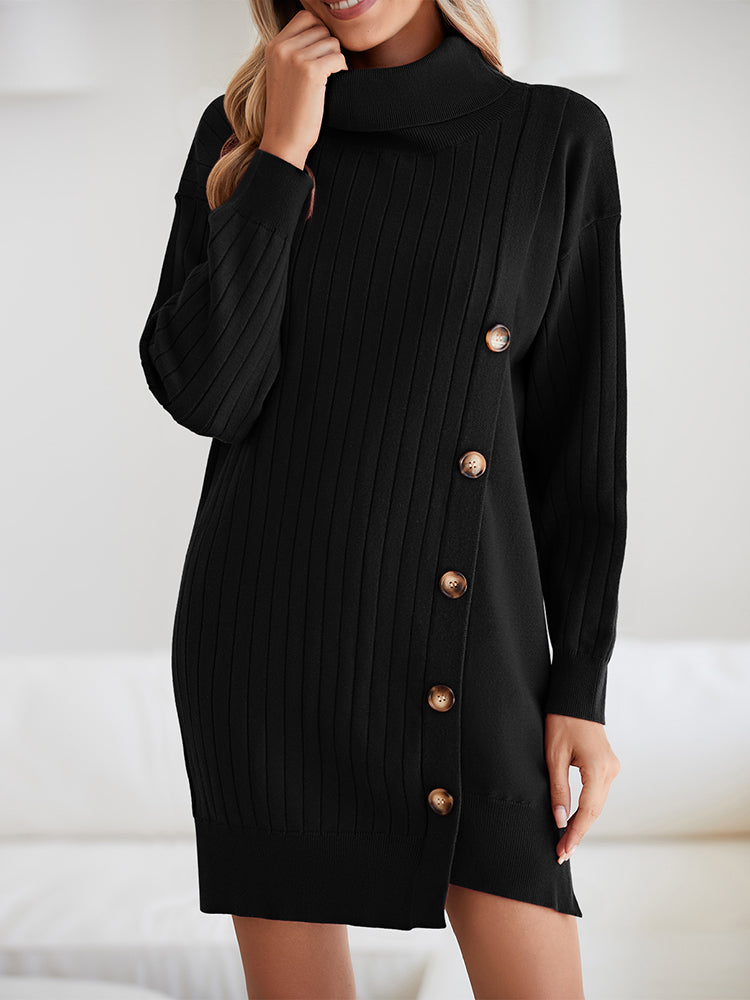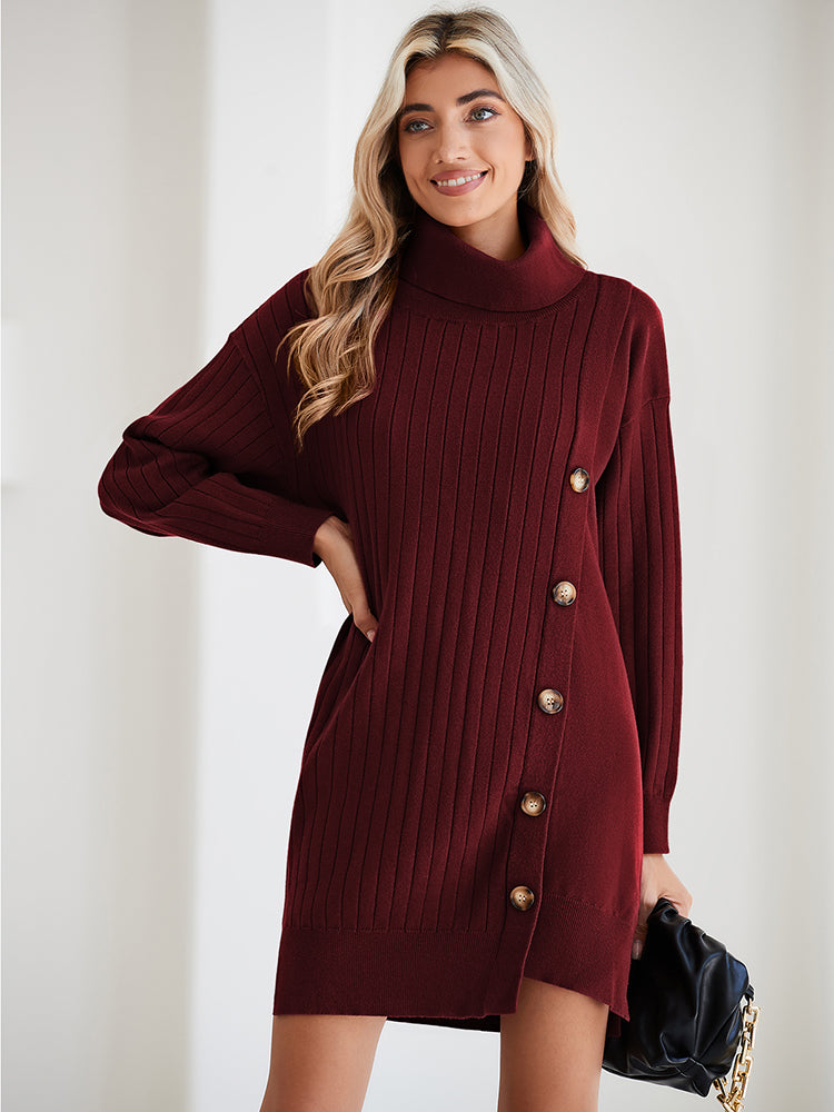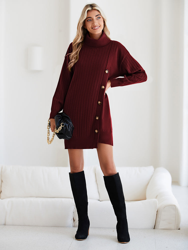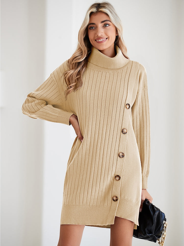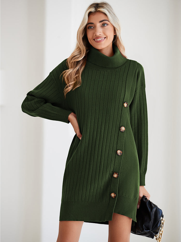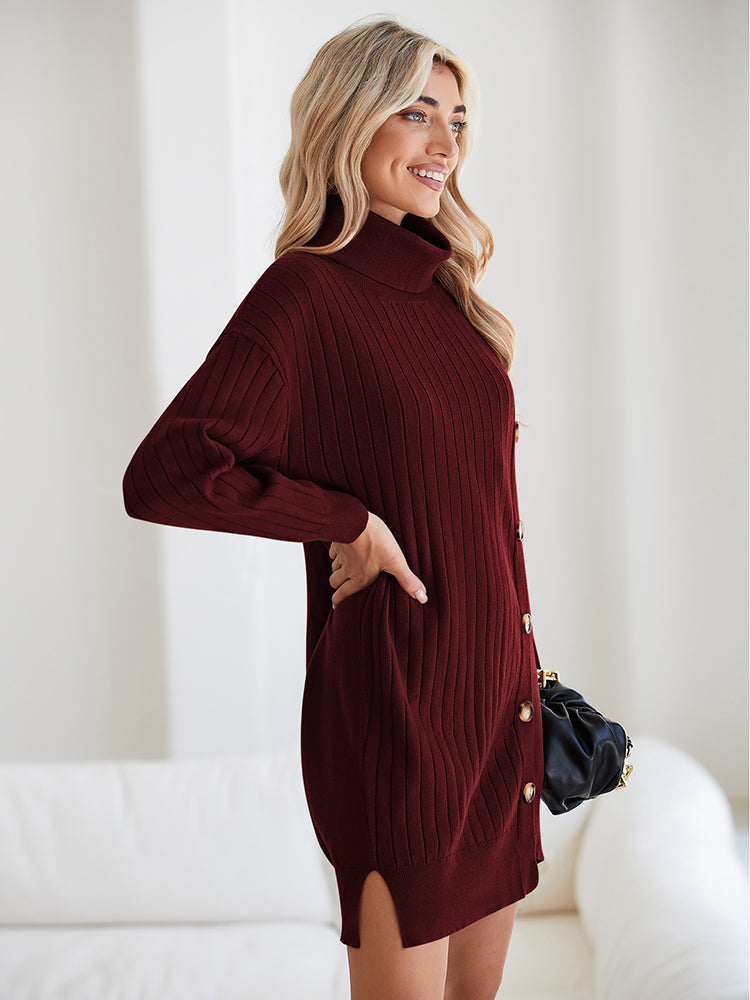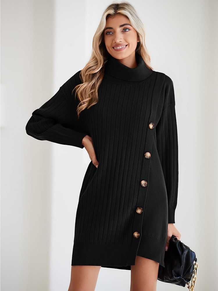 Women's Turtleneck Button Down Sweater Dress Long Sleeve Ribbed Knit Mini Dress Outfits