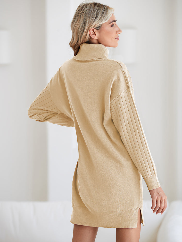 - The elegant short sweater dress outfits features with long sleeve, turtleneck, drop shoulder, above knee mini length, and oversized tunic dresses for women. The high-neck design is not too tight and keep warm well