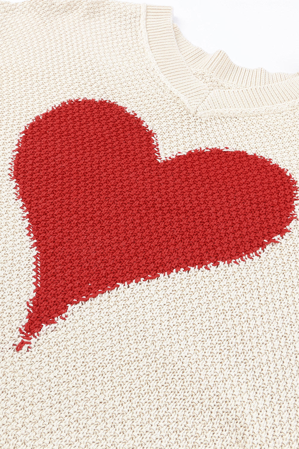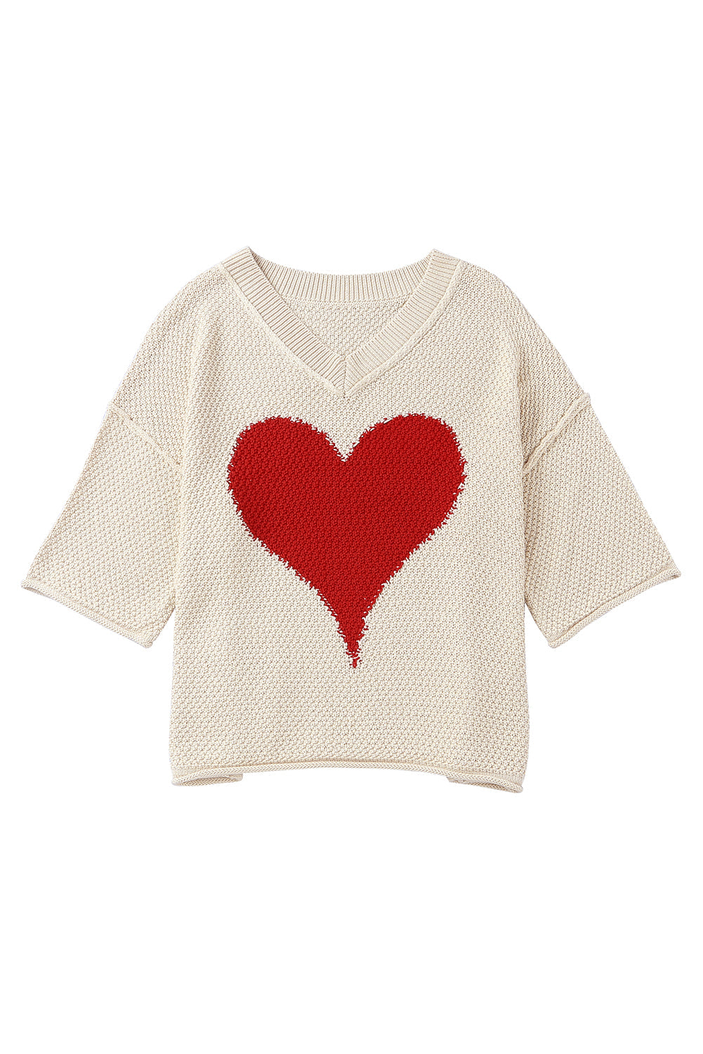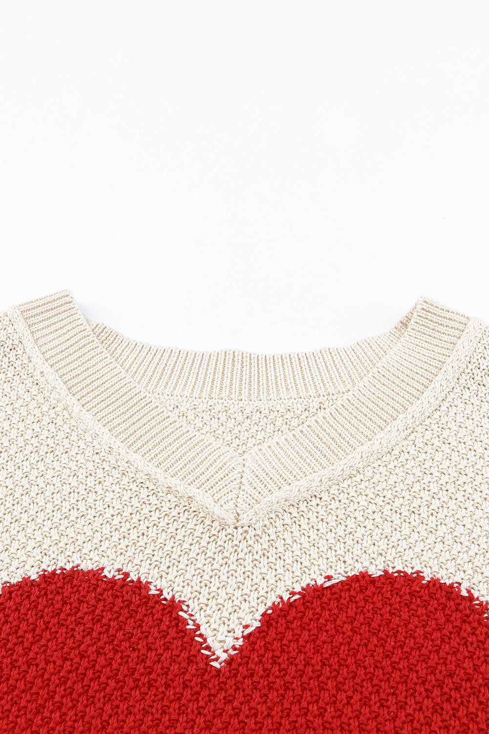 Valentine Day V Neck Oversized Knit Sweaters Heart Print Slouchy Top