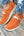 Women's Orange Patchwork Drawstring Hoodie with Kangaroo Pocket