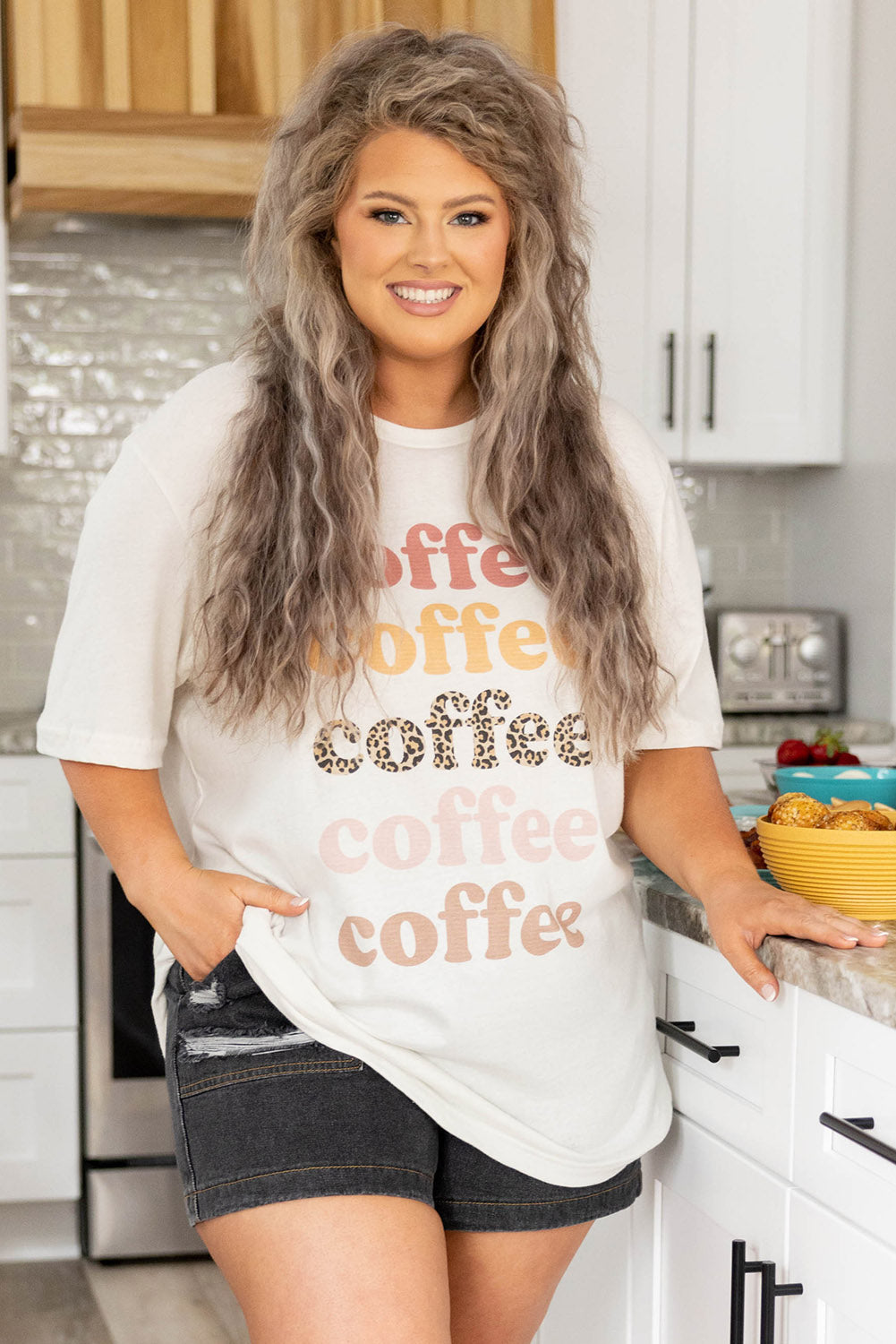 Women's Plus Size Multiple Coffee Letter Print T Shirt Vintage Basic Graphic Tee