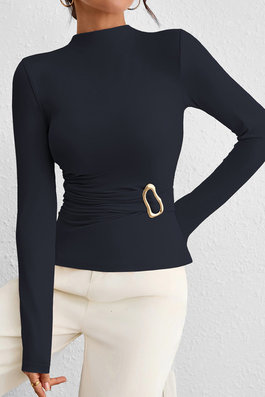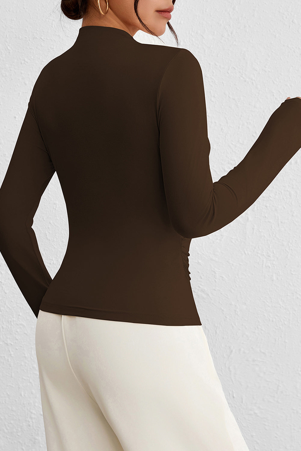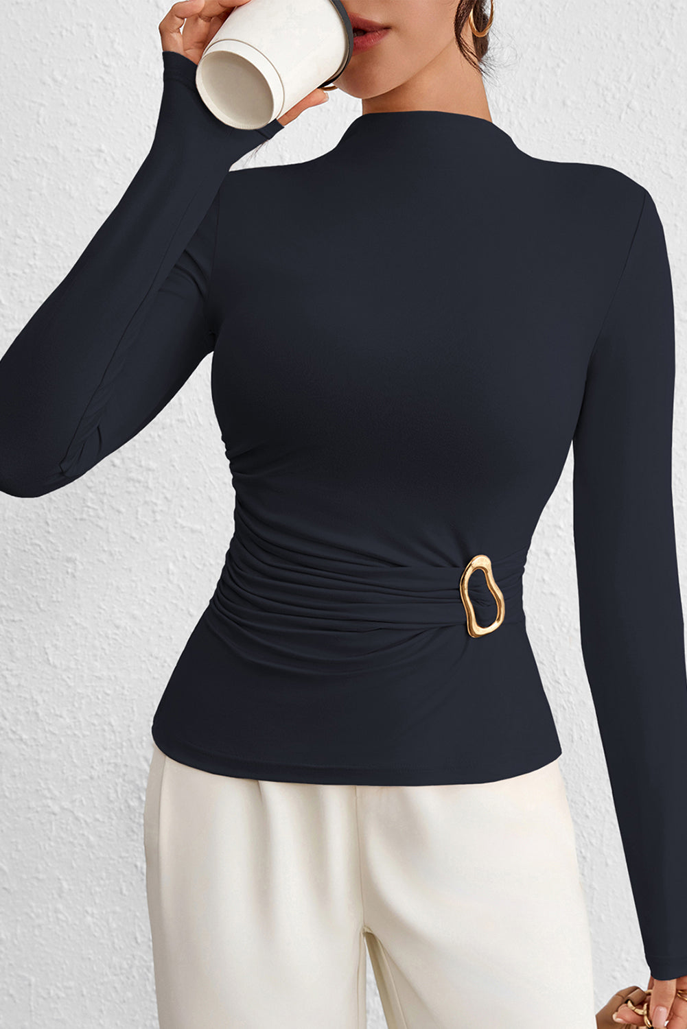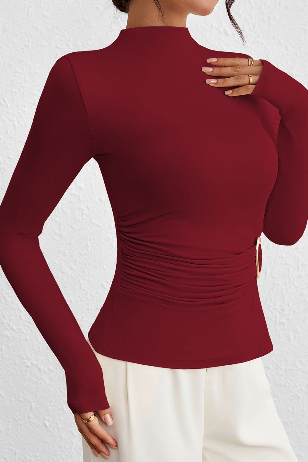 - Long sleeve mock-neck top ruched button decor shirts for a chic accent