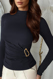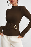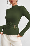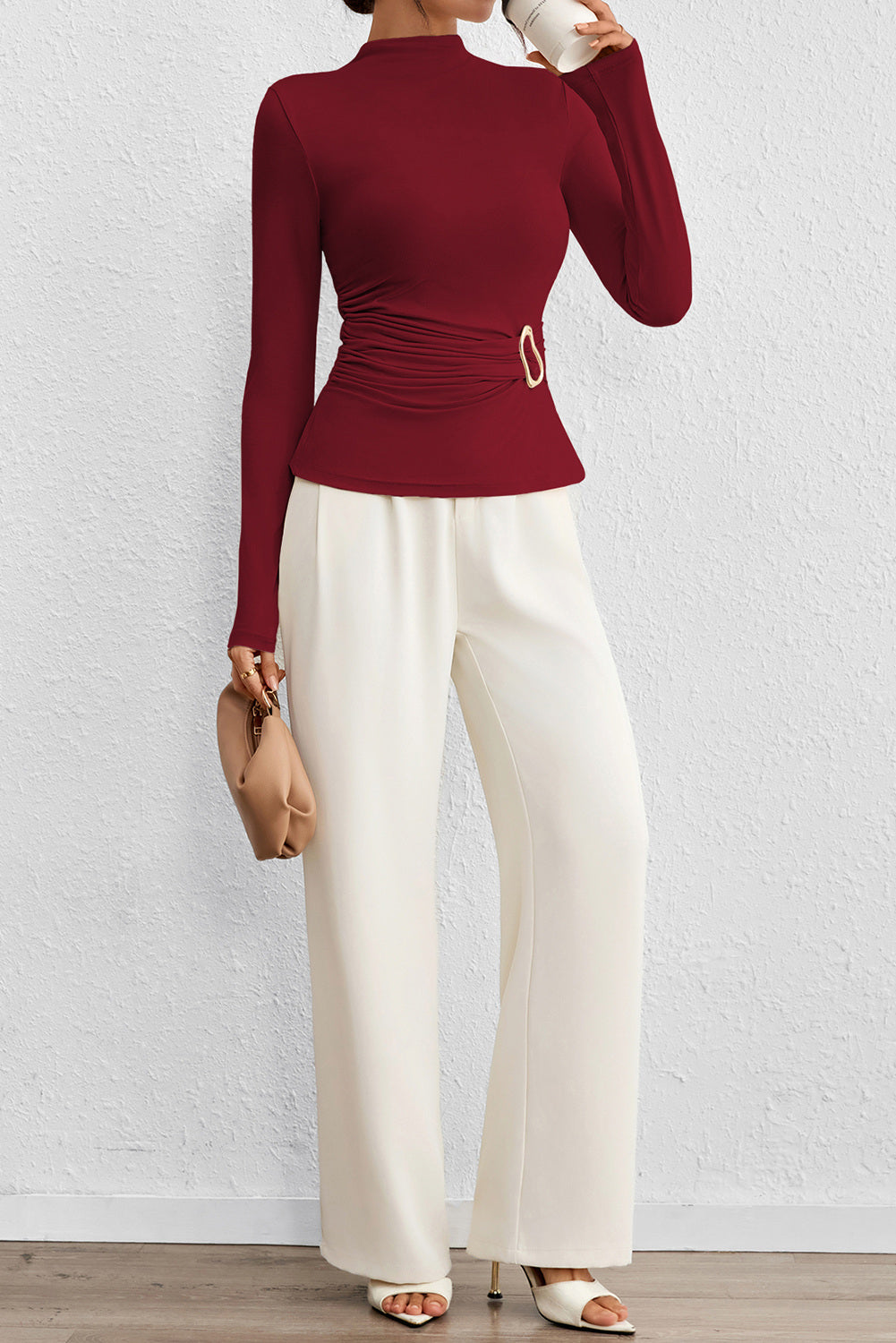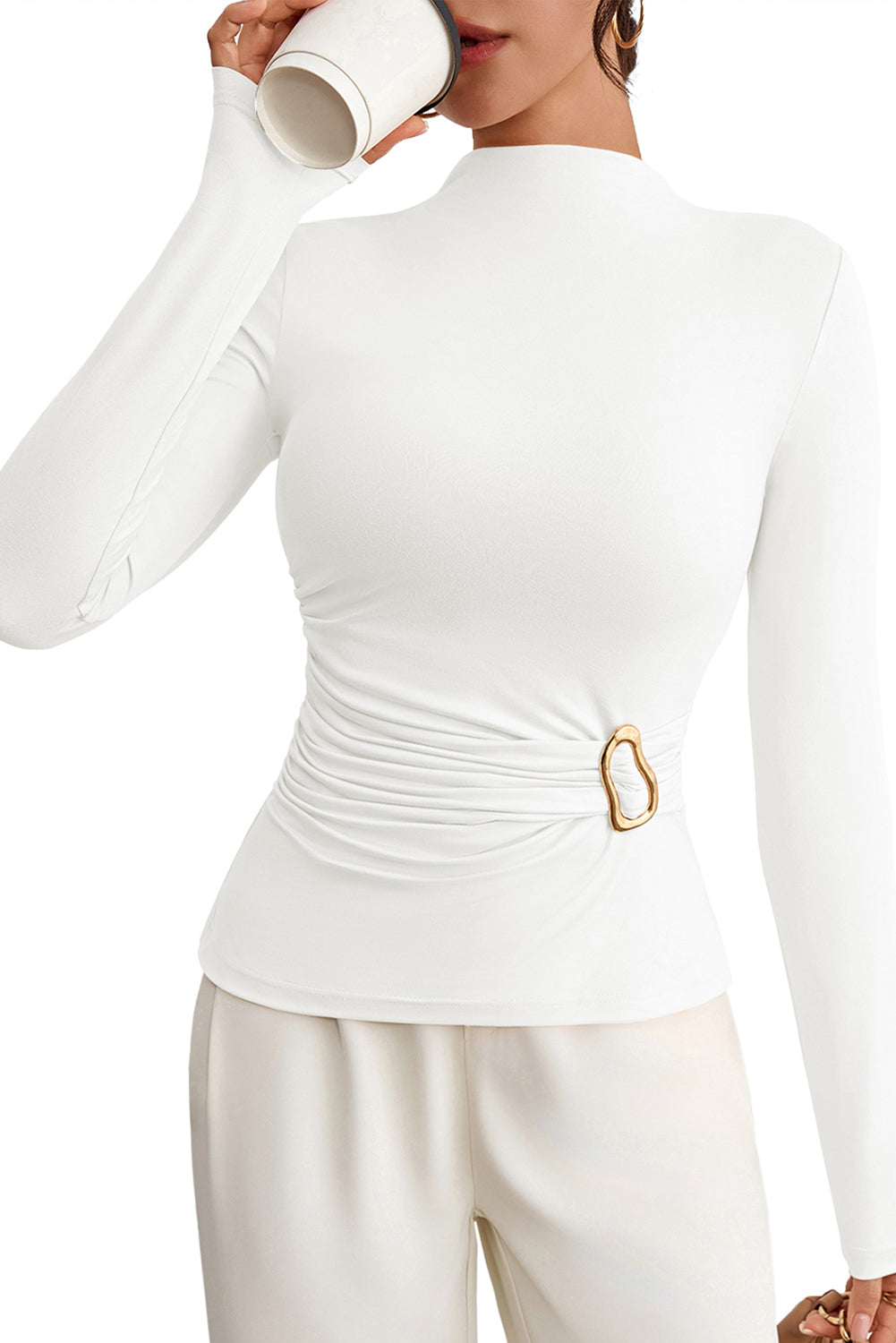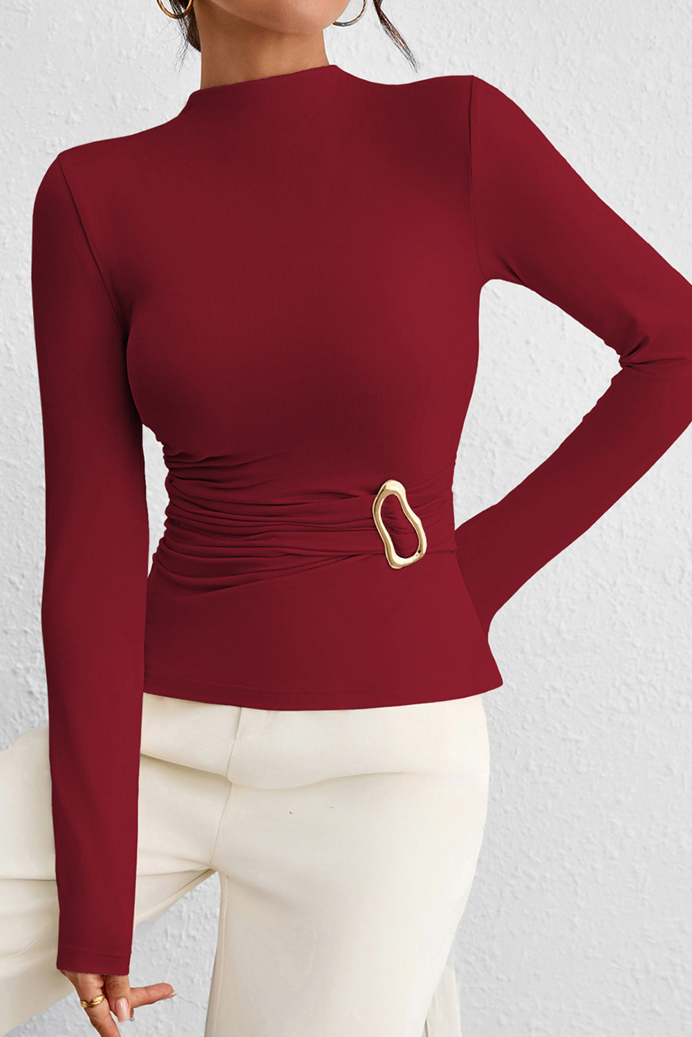 - Long sleeve mock-neck top ruched button decor shirts for a chic accent