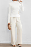 Pink Queen Women's Long Sleeve Shirts Mock Neck Button Decor Ruched Slim Fit Tops